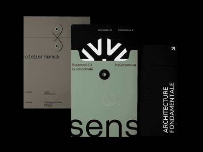 We’re launching the creative process on the premise that, to be successful, an architectural project has to engage all the senses. The company’s responsive and collaborative spirit led to the creation of “Atelier SENS, architecture fondamentale.” Organic and structured, the new logo evokes the five senses and the foundation needed for strong architecture. The typography, palette and imagery inspire accessibility, partnership and drive. The key branding elements are used in all the media required for the points of contact.