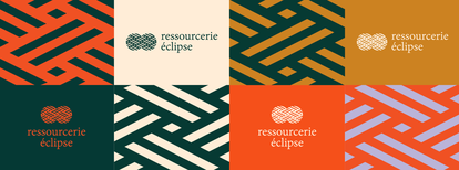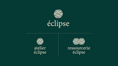 La nouvelle identité est attrayante et agréable, ce qui témoigne de la qualité des produits et des services d’Éclipse. Le logo associé aux noms a une forte signification. D’une part, on y voit les fibres d’un tissu, de même que les mailles d’un lainage. D’autre part, cet enchevêtrement représente les maillons qui unissent la communauté d’Éclipse, soit les clients, les donateurs et les travailleurs. Des couleurs chaudes et enveloppantes donnent le ton à l'ensemble de l'image de marque.