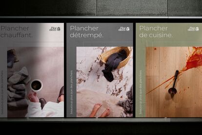Le slogan va droit au but : « De l’inspiration à l’installation ». Le « in » renvoie aux adresses et aux intérieurs tendance. La nouvelle palette offre plus de possibilités d’ambiances et se distingue du côté commercial de la concurrence. « Beaucoup plus que des planchers » vient souligner l’étendue des produits et services. Toutes les pièces créées sont déclinées avec le même naturel. En supports radio, télé, imprimés et numériques, les notions d’accompagnement et de simplicité sont au cœur de la campagne.